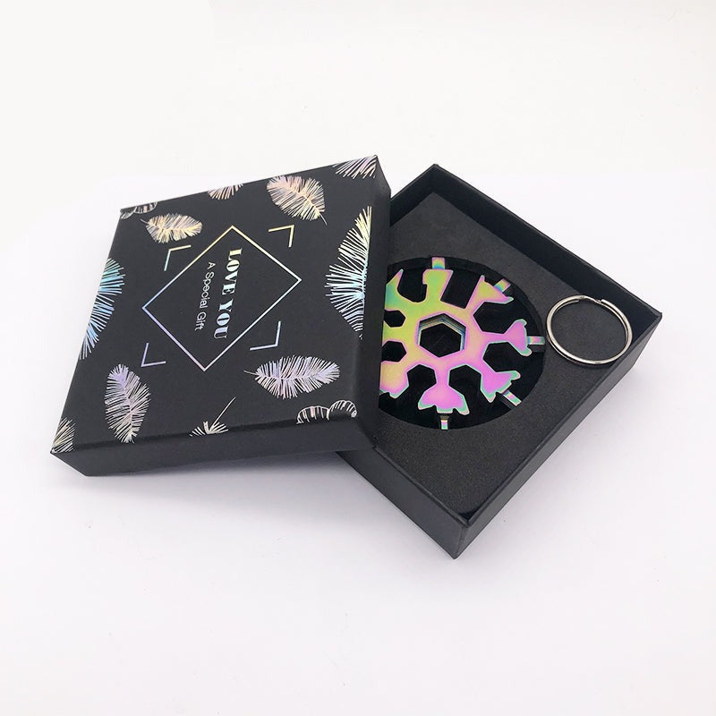 • 18-in-1 Ultimate Convenience! This amazing "snowflake" consists of a total of 18 different tools, including the regular Philips and flathead screwdriver, No. 3, 4, 5, 6, 7, 8 hex keys, and No. 6, 7, 8, 9, 10, 12, 14 wrenches, even with a bottle opener!